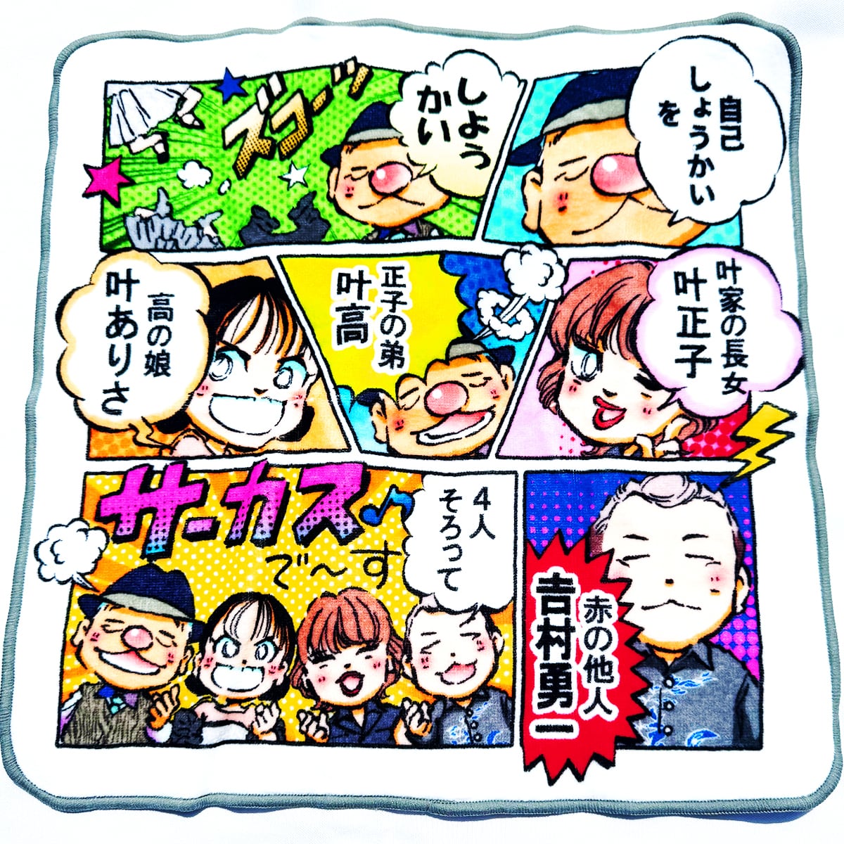 メンバー(叶正子・叶高・叶ありさ・吉村勇一)がポップなコミック風イラストで描かれた、ここでしか手に入らない限定デザインです。